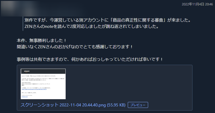 ※2:偽造品とは知らずに、結果的に販売してしまった場合は故意ではないとしてサポート致します。なおこのケースでアカウント回復事例ができております。